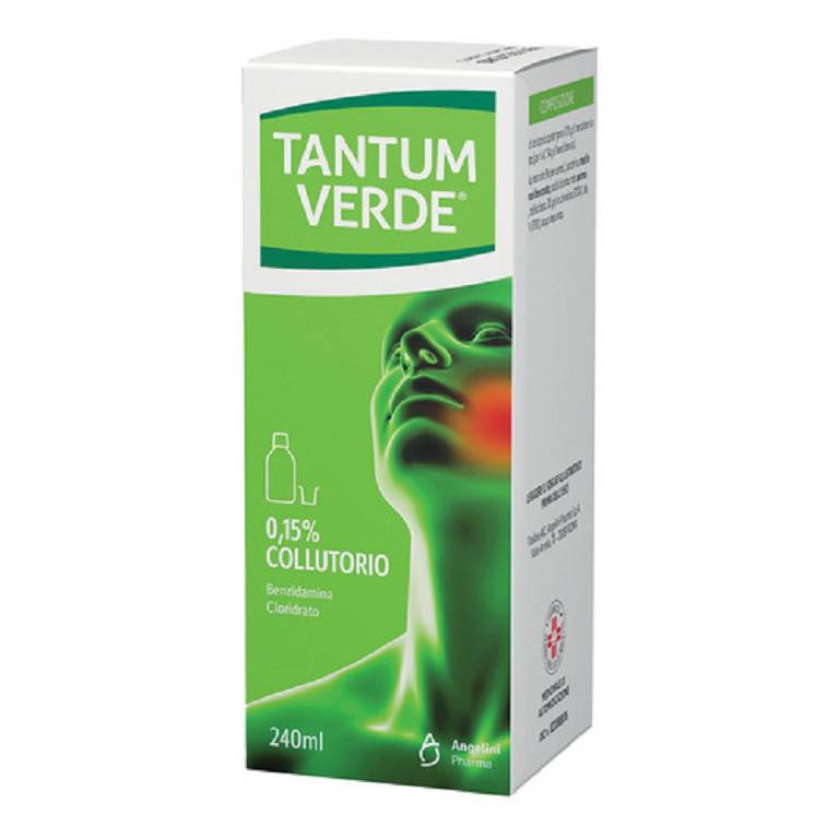 L'uso del prodotto, specie se prolungato, puo' dar luogo a fenomeni disensibilizzazione. In tal caso interrompere il trattamento e consultare il medico per istituire idonea terapia. In un numero limitato di pazienti le ulcerazioni oro-faringee possono essere segno di patologie piu' gravi. Pertanto, nel caso in cui i sintomi dovessero perdurare perpiu' di tre giorni, il paziente deve rivolgersi al proprio medico o dentista a seconda delle necessita'. L'uso della benzidamina e' sconsigliato in pazienti con ipersensibilita' all'acido acetilsalicilico o adaltri FANS. Tantum Verde collutorio deve essere somministrato con cautela in soggetti che in passato hanno avuto episodi di asma bronchiale, in quanto in questo tipo di pazienti potrebbero intervenire fenomenidi broncospasmo. Eccipienti: Tantum Verde collutorio contiene paraidrossibenzoati che possono causare reazioni allergiche (anche ritardate). Tantum Verde collutorio contiene Aroma menta che a sua volta contiene alcol benzilico, alcol cinnamilico, citrale, citronellolo, eugenolo,geraniolo, isoeugenolo, linalolo, e d-limonene. L' alcol benzilico, l'alcol cinnamilico, il citrale, il citronellolo, l'eugenolo, il geraniolo, l'isoeugenolo, il linalolo e il d-limonene possono causare reazioni allergiche.